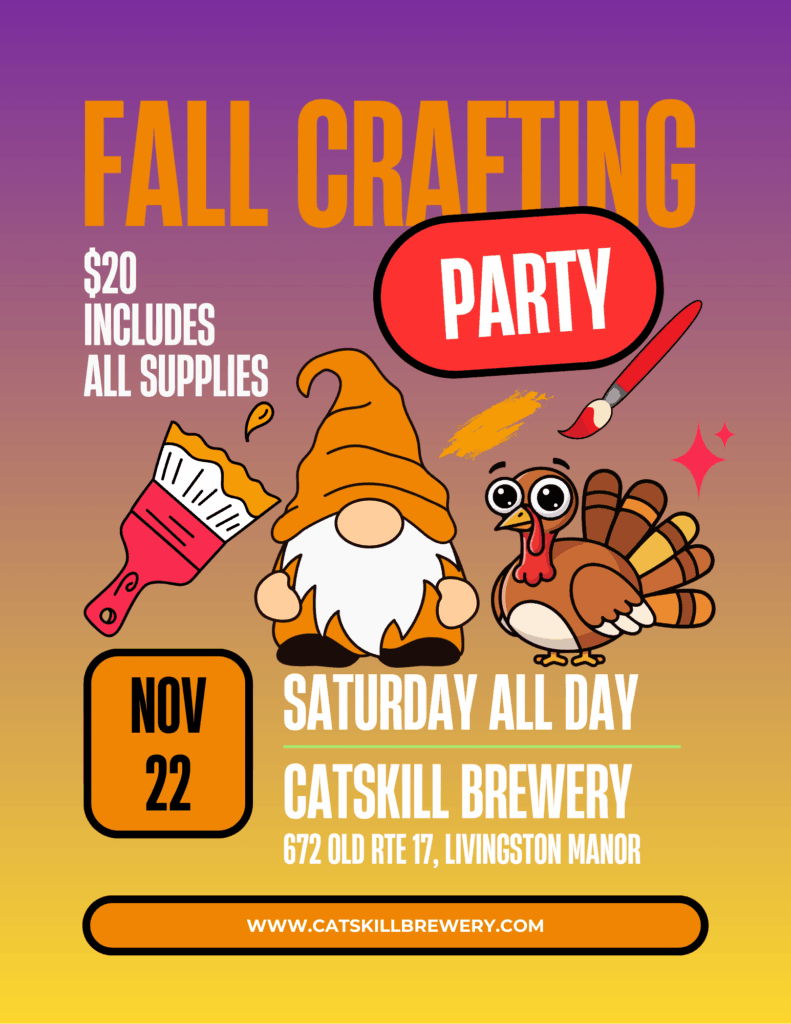 Celebrate the season with a cozy Fall Crafting Party at Catskill Brewery! Join us on Saturday, November 22nd for an afternoon of creativity, community, and Catskill beer. Whether you’re a seasoned maker or just looking for a fun seasonal activity, this is the perfect way to get into the autumn spirit.