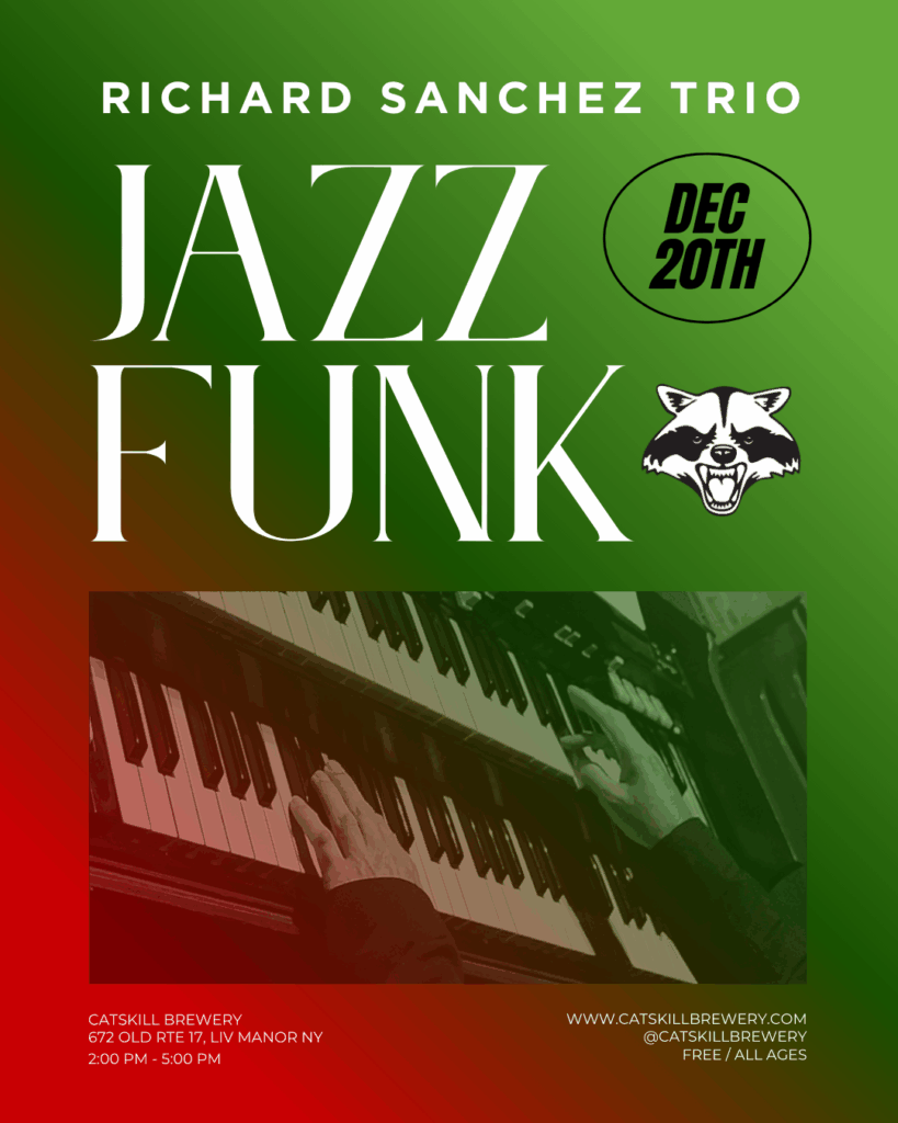 Join us at Catskill Brewery in Livingston Manor, NY for an afternoon of soul-stirring sound and groove-forward energy featuring The Richard Sanchez Trio.